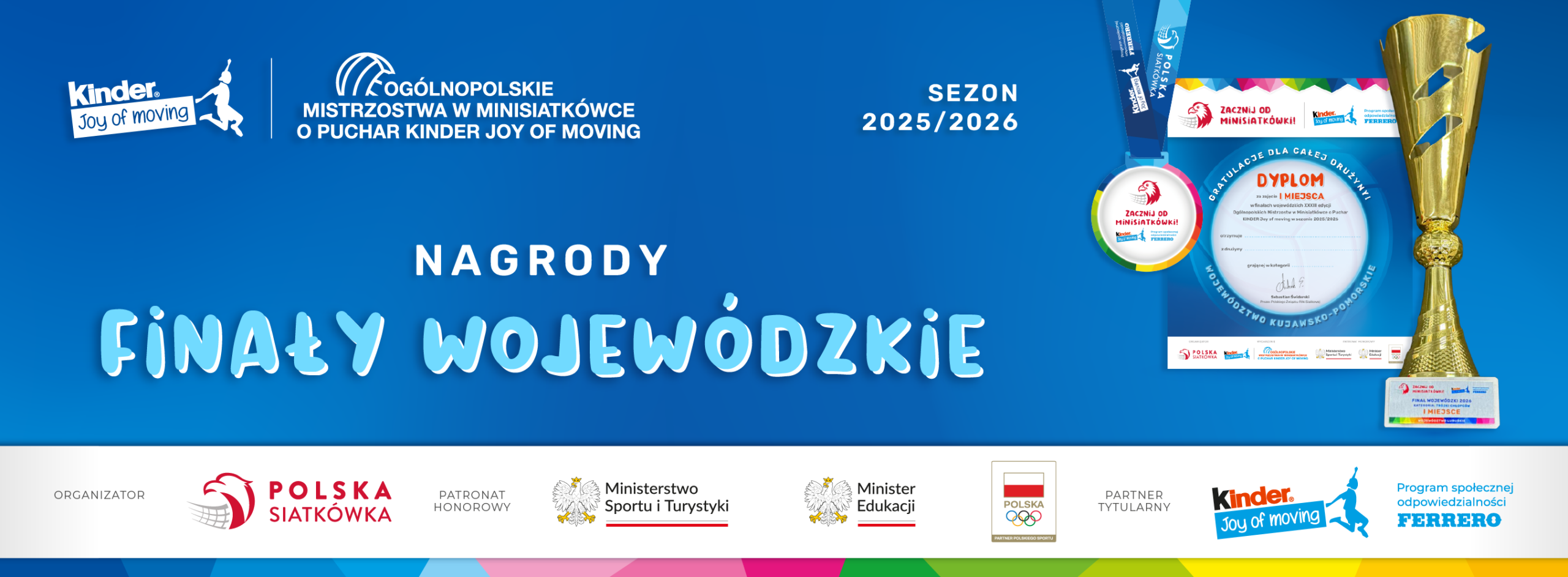 Ogólnopolskie Mistrzostw w Minisiatkówce im. Marka Kisiela o Puchar KINDER Joy of moving wchodzą w decydującą fazę na poziomie rozgrywek regionalnych. Przedstawiamy informację dotyczącą nagród dla finalistów tegorocznych finalistek i finalistów w danym województwie.
